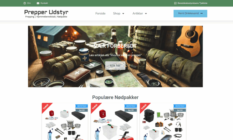 Potentiale for at udvide den med forskelligt prepper udstyr eller selv lave en webshop